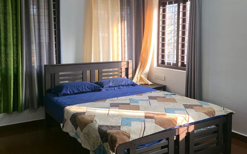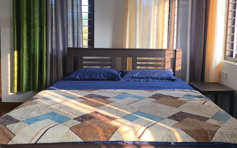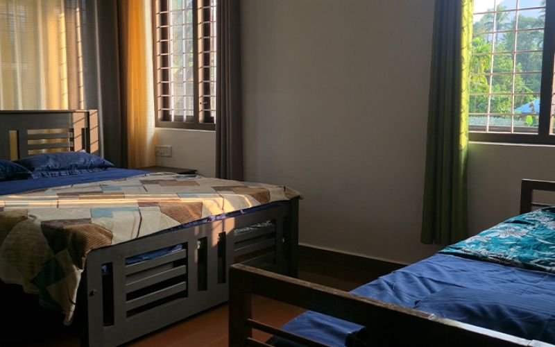 Guest House 1 offers spacious and flexible accommodations featuring three private bedrooms and two dormitories, each comfortably sleeping up to four guests at ₹5,000 per night. Perfect for families and active groups, this house provides access to premium amenities including a covered and treated swimming pool, a children's park, a barbecue area, and a dedicated dining space. For ultimate privacy or larger gatherings, the entire house can be reserved for ₹25,000 per night.
